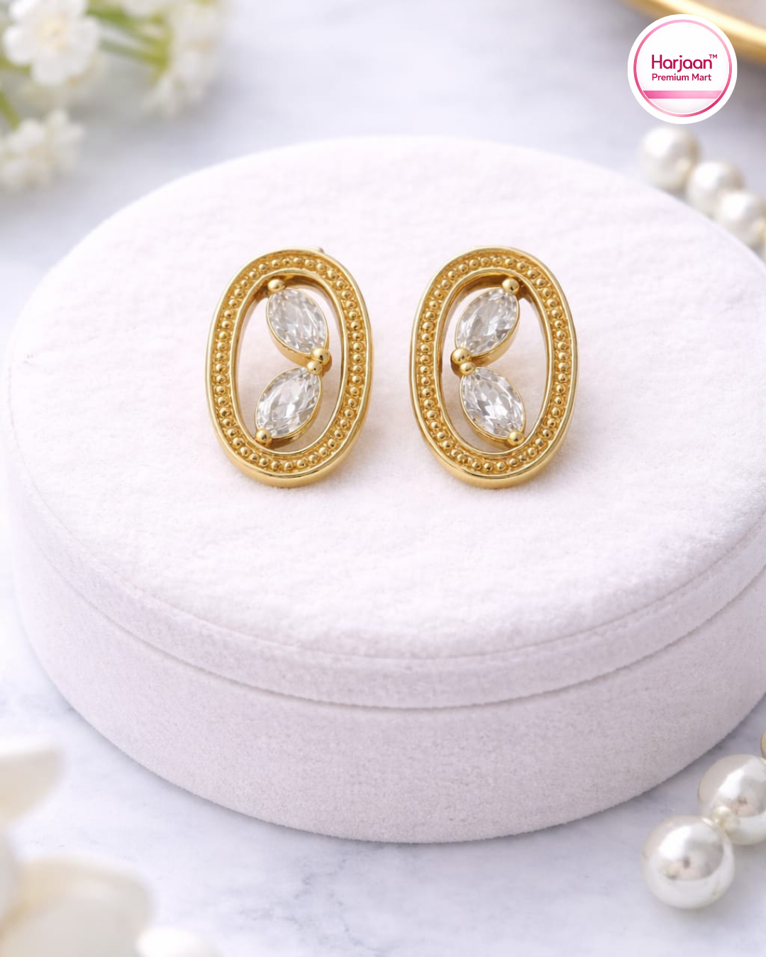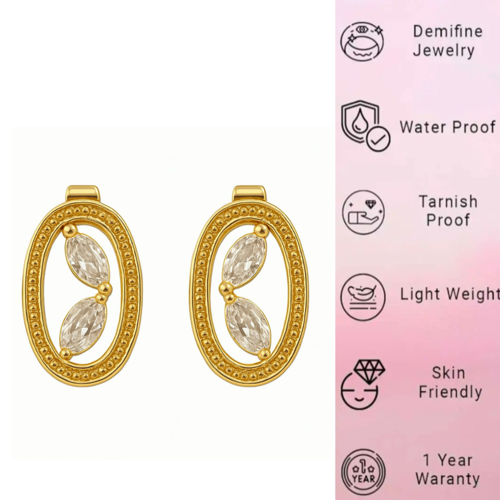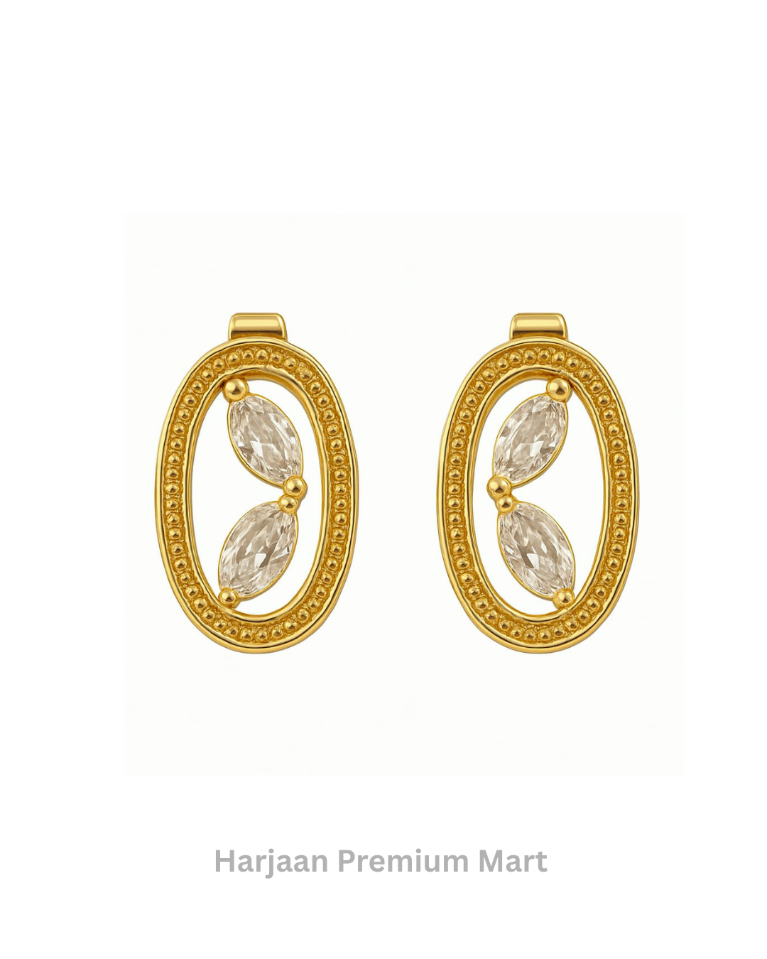 Gold Plated White Stone Oval EarRingAvailability: 5 in stock