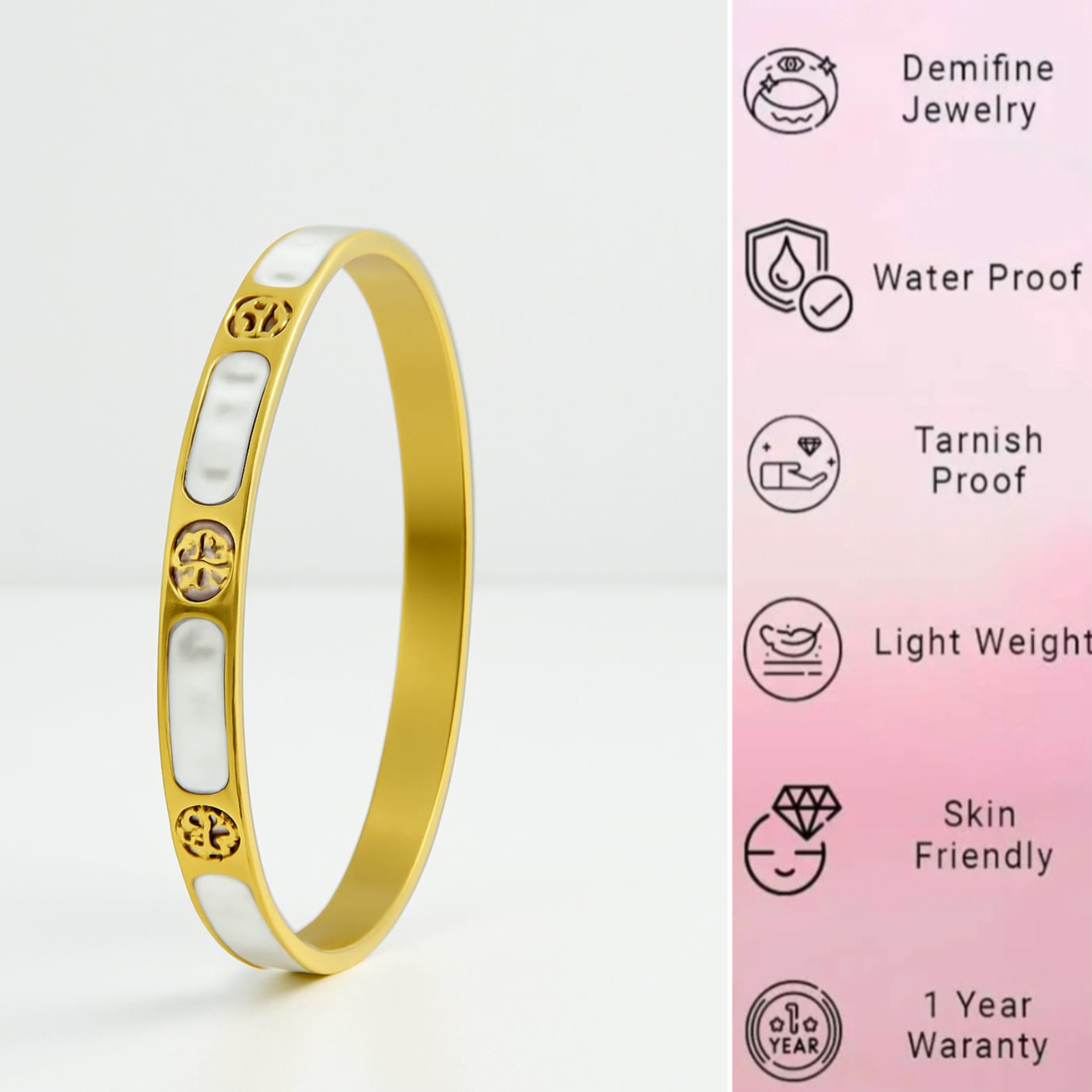 18k Gold Plated Anti-Tarnish , Stainless Steel, Water Proof  Gold Bangle Bracelet  For Women