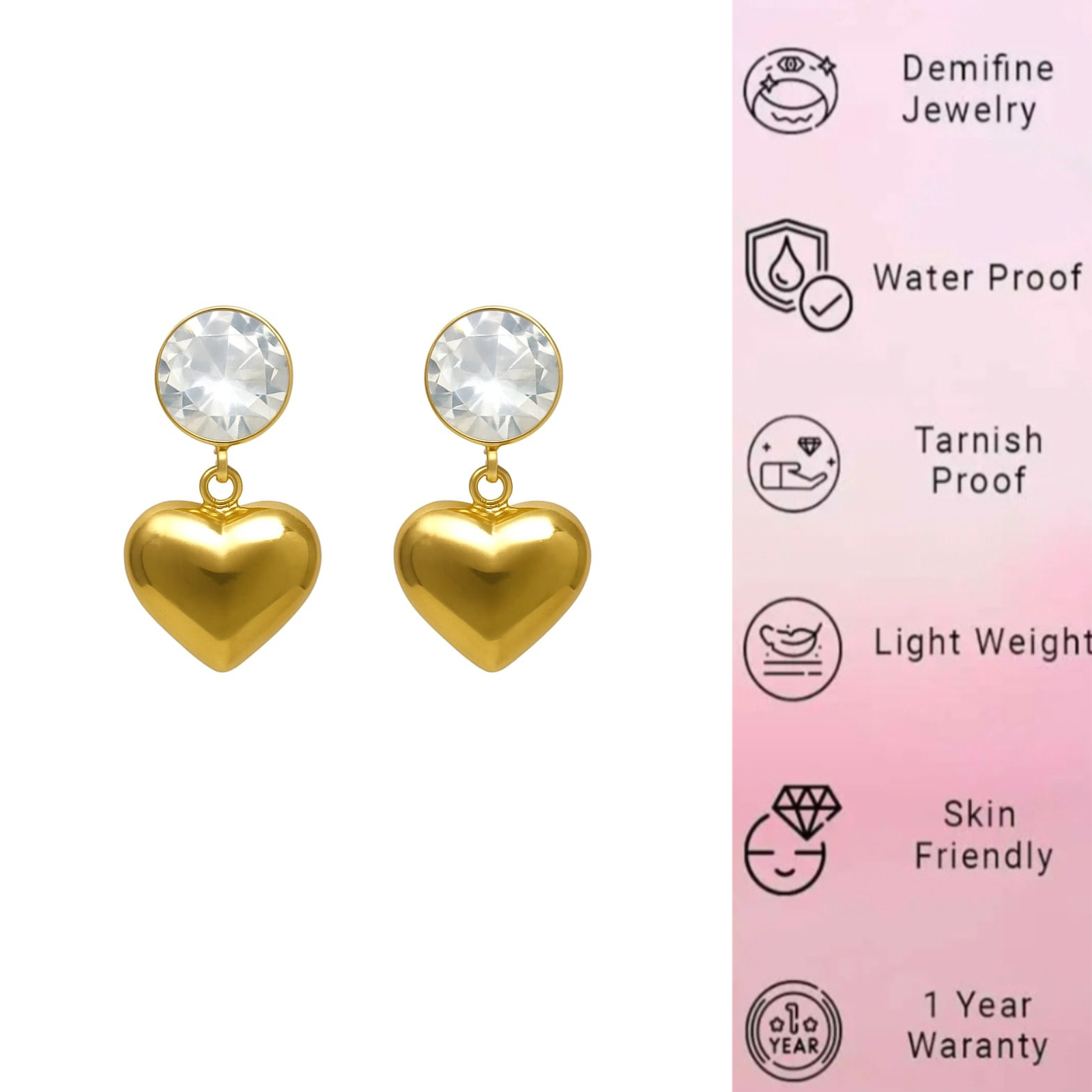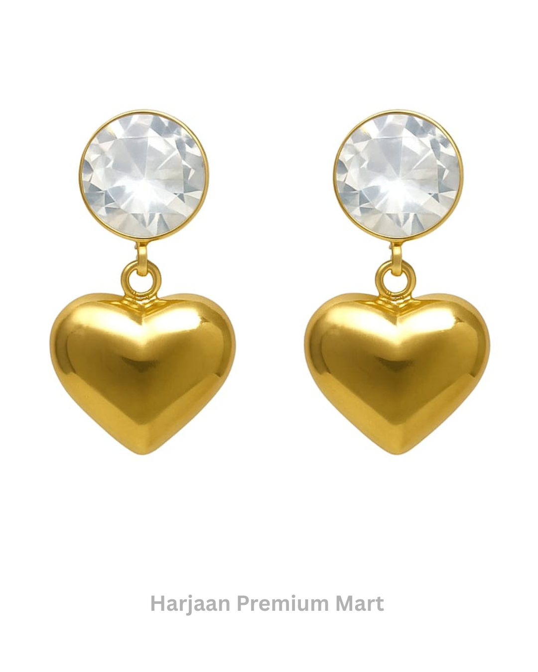 Gold Plated White Stone Heart EarRingAvailability: 5 in stock