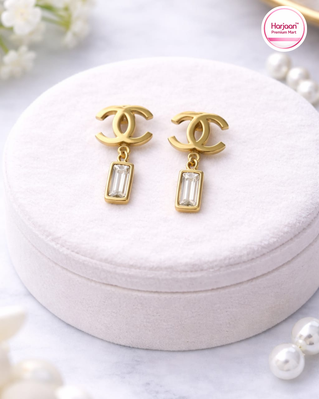 White Stone EarRing-Gold PlatedAvailability: 1 in stock