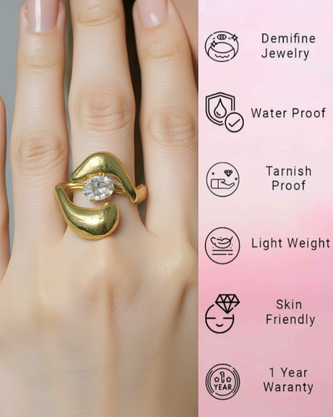 18k Gold Plated Anti-Tarnish , Stainless Steel, Water Proof Gold Ring For Women