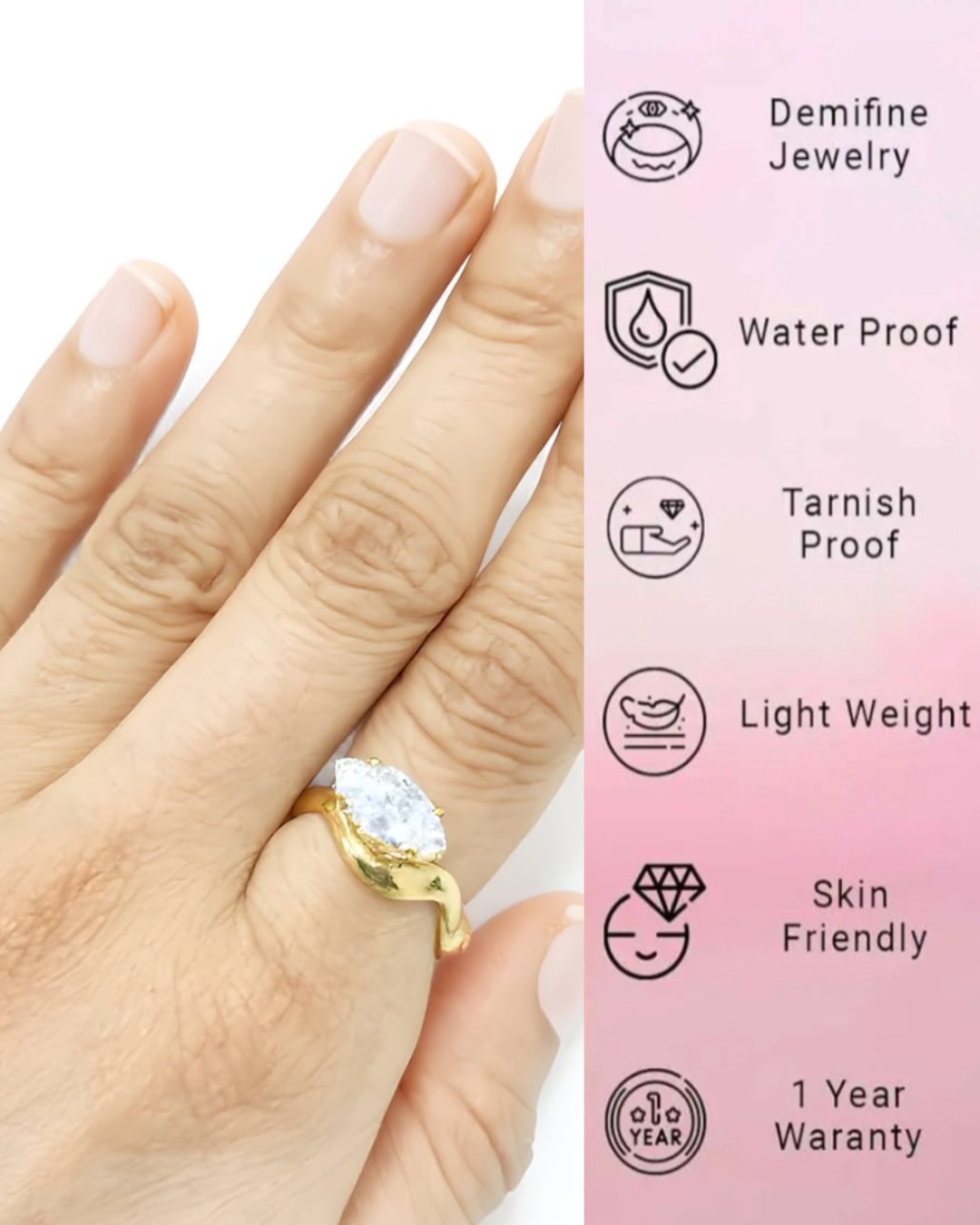 18k Gold Plated Anti-Tarnish , Stainless Steel, Water Proof Gold Ring For Women