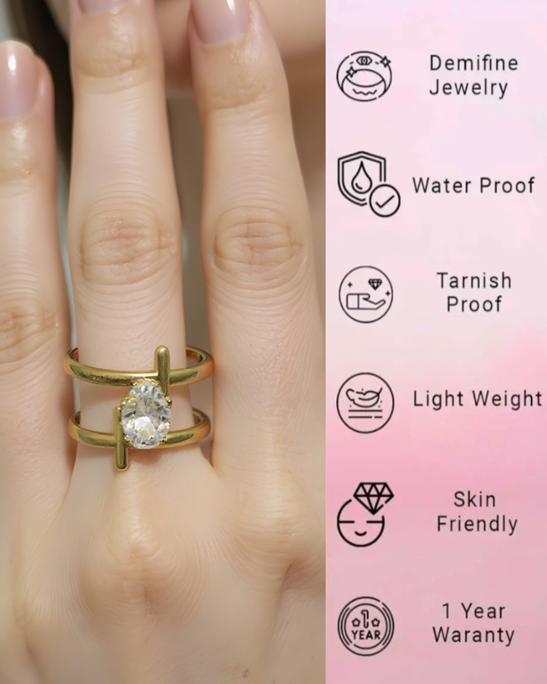 18k Gold Plated Anti-Tarnish , Stainless Steel, Water Proof  Gold Ring  For Women
