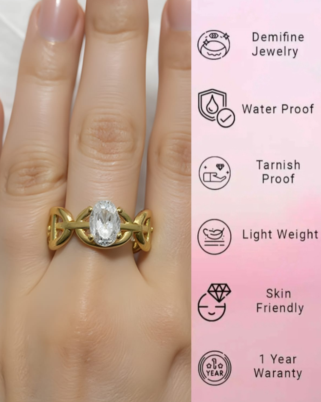 18k Gold Plated Anti-Tarnish , Stainless Steel, Water Proof  Gold Ring  For Women