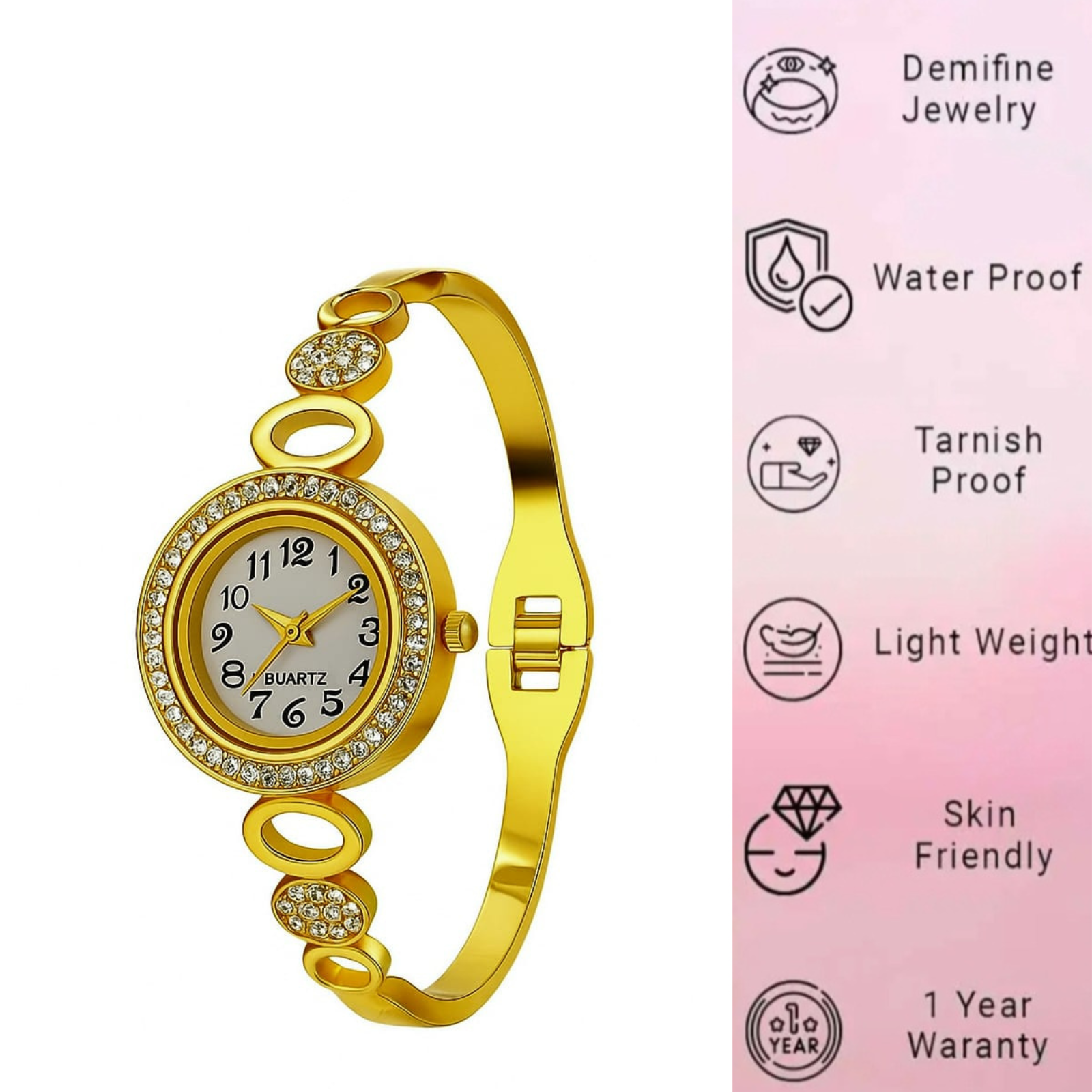 18k Gold Plated Anti-Tarnish , Stainless Steel, Water Proof Watch For Women