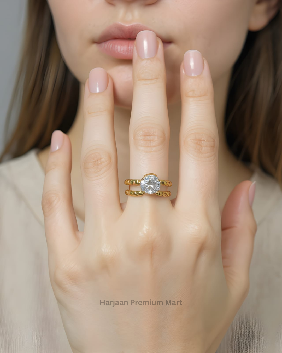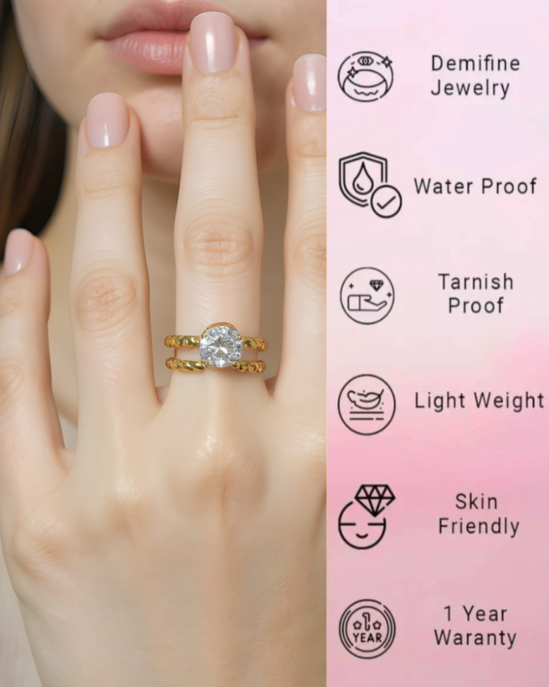 18k Gold Plated Anti-Tarnish , Stainless Steel, Water Proof Gold Ring For Women