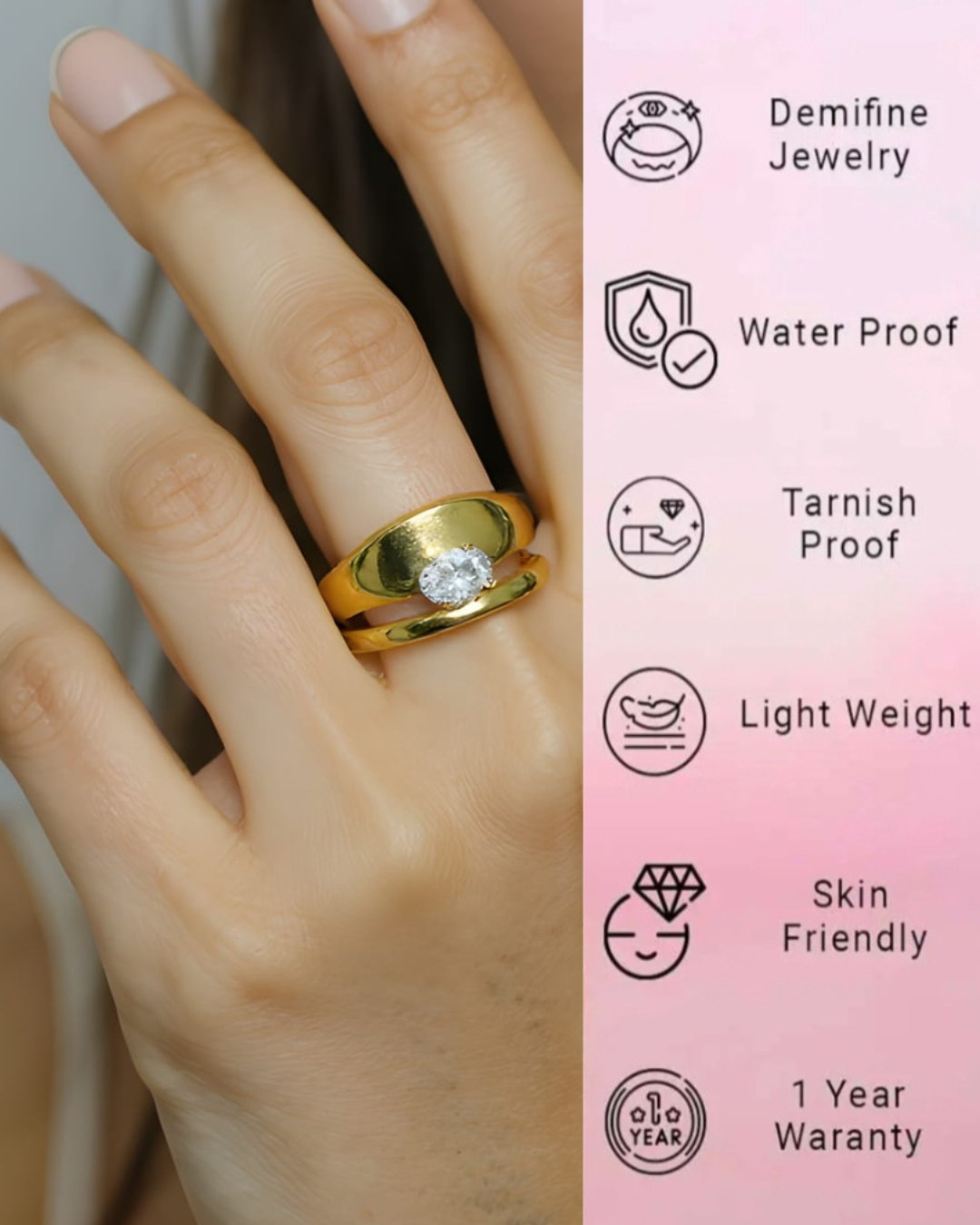 18k Gold Plated Anti-Tarnish , Stainless Steel, Water Proof Gold Ring For Women