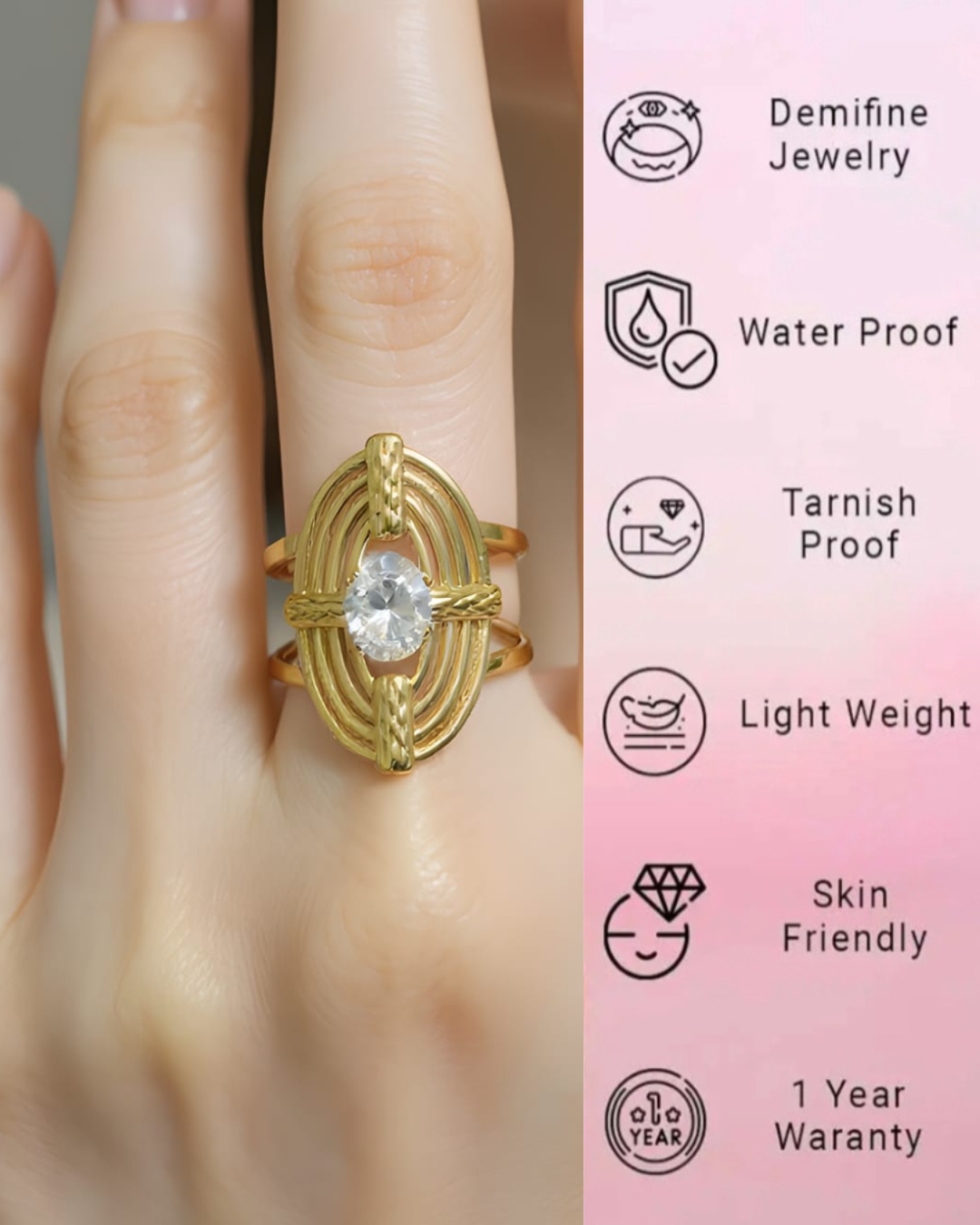 18k Gold Plated Anti-Tarnish , Stainless Steel, Water Proof Gold Ring For Women