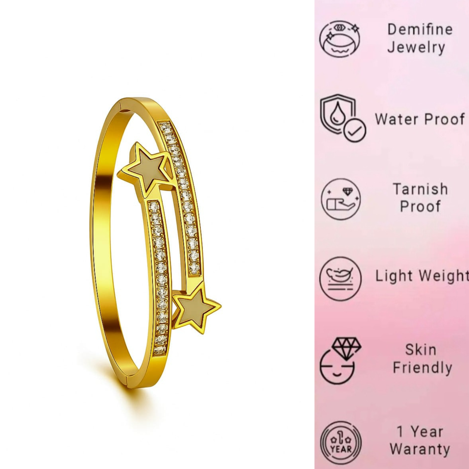 18k Gold Plated Anti Tarnish , Stainless Steel Water Proof Gold Bangle Bracelet For Women