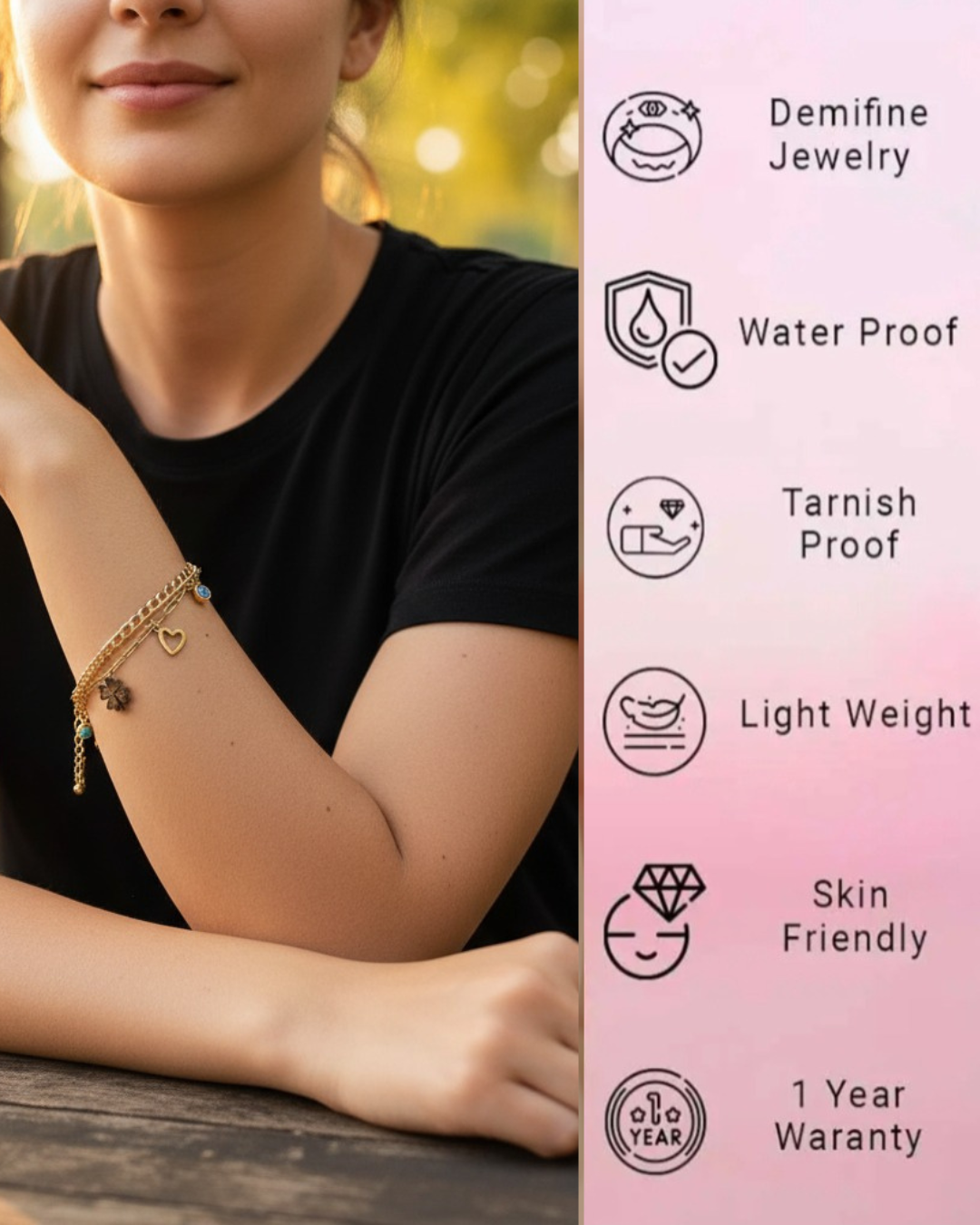 18k Gold Plated Anti Tarnish , Stainless Steel Water Proof Gold Bracelet For Women