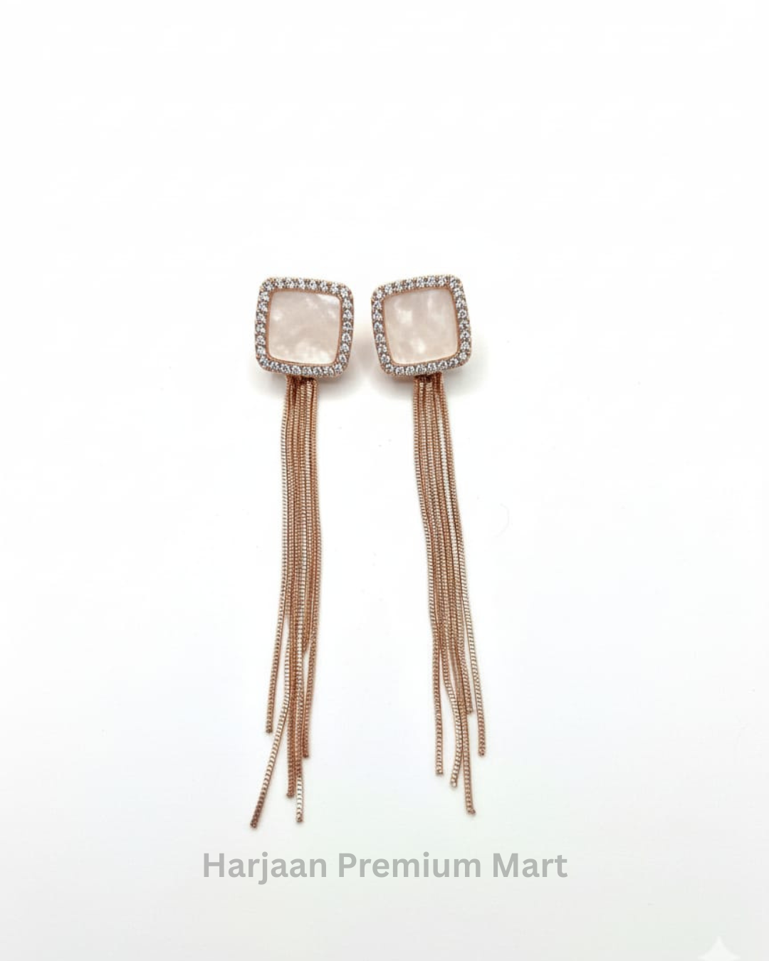 Gold Plated Square White Stone EarRingAvailability: 4 in stock