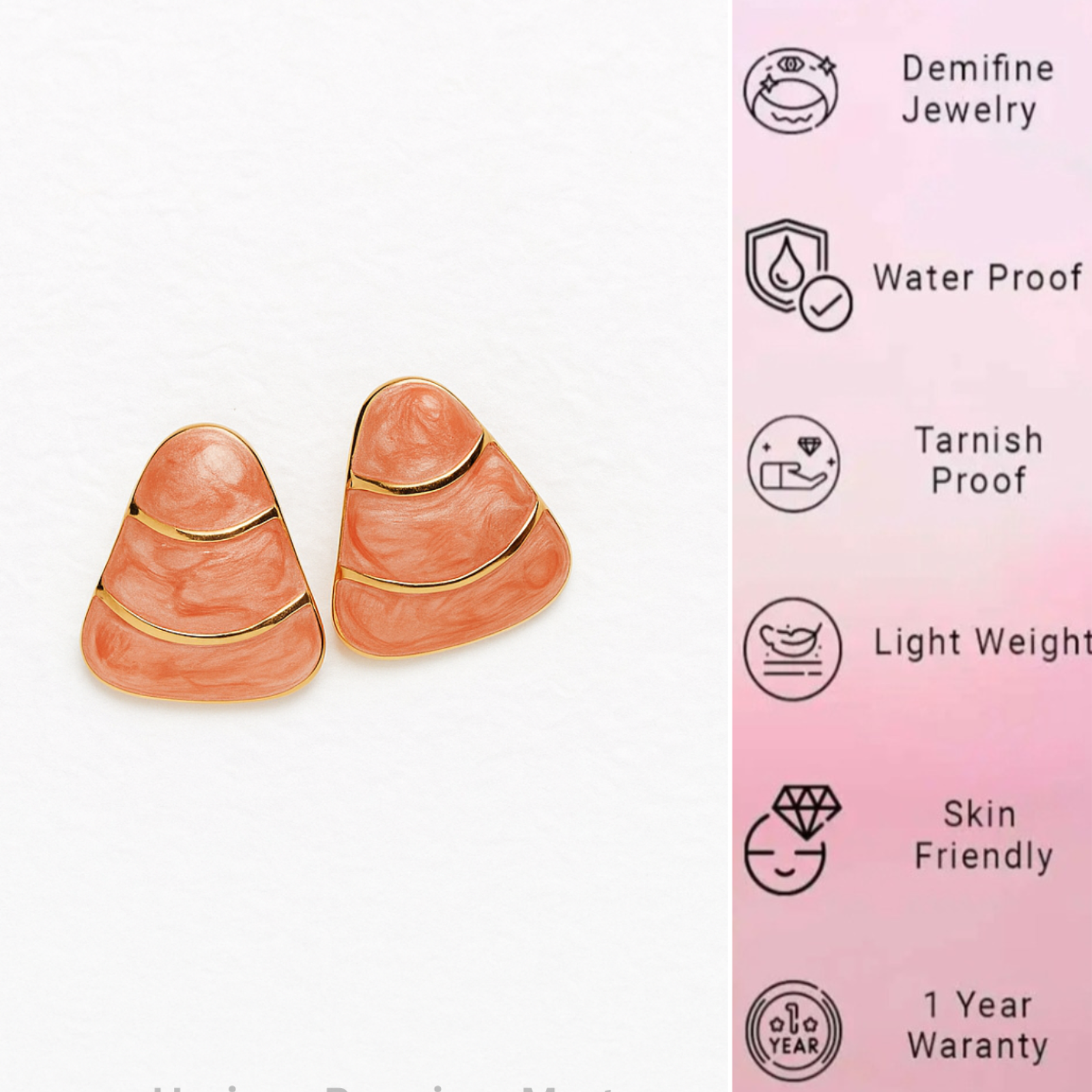 18k Gold Plated Anti-Tarnish , Stainless Steel, Water Proof Gold Stud EarRing For Women